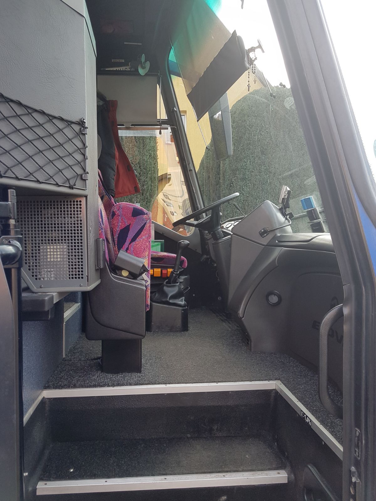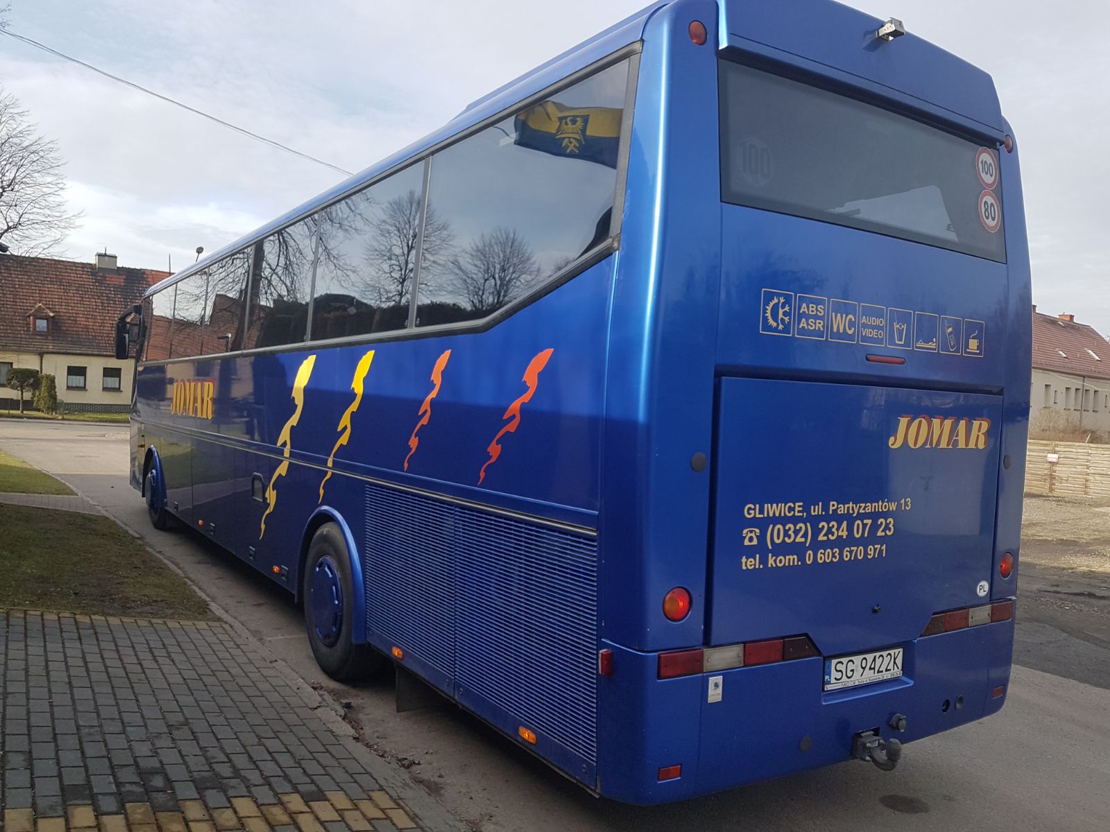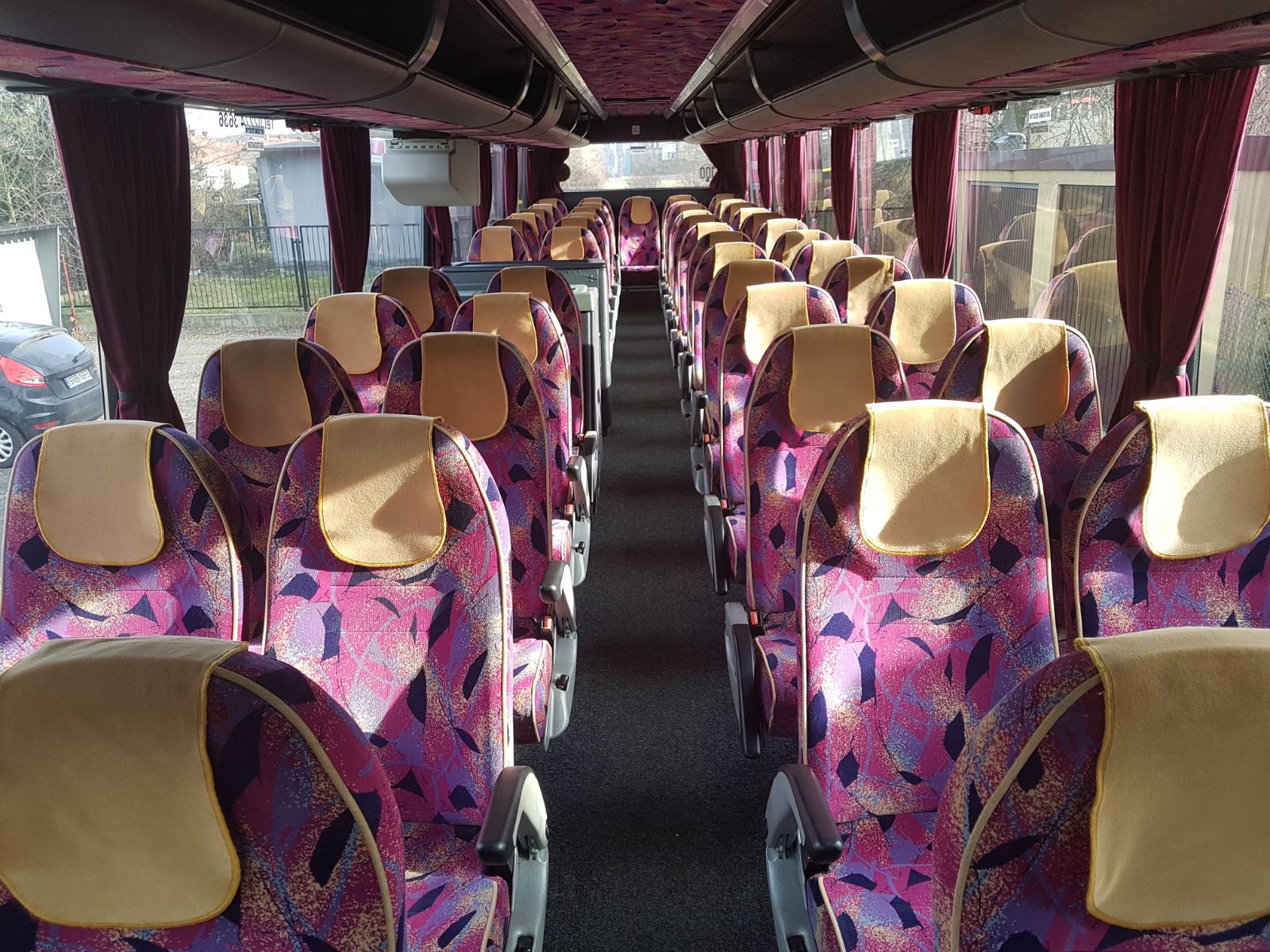 Wyposażenie: Nagłośnienie, mikorofon, TV, WC, cafebar, lodówka, klimatyzacja, rozsuwane fotele, pasy bezpieczeństwa na każdym fotelu.